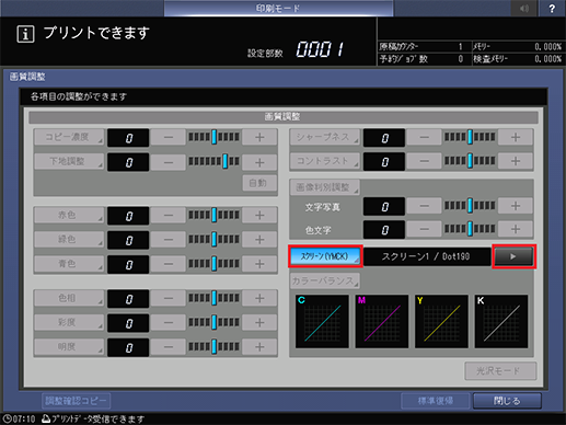 濃度バランスチャートを出力し、スキャナーで測色することで、濃度バランスを自動調整します。