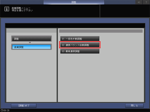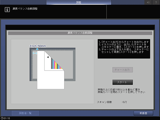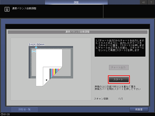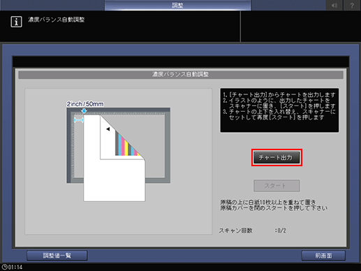 チャートが出力され、[濃度バランス自動調整]画面が表示されます。
