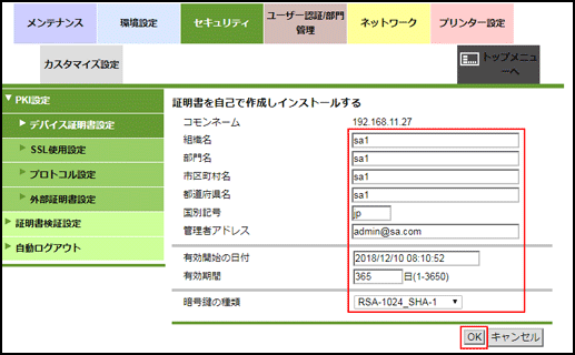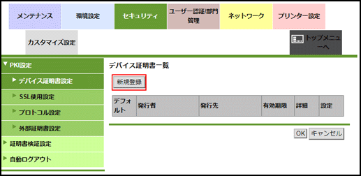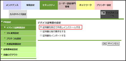 ここでは、Web Connectionに管理者としてログインして、本体で証明書を作成します。