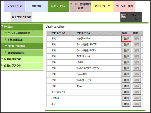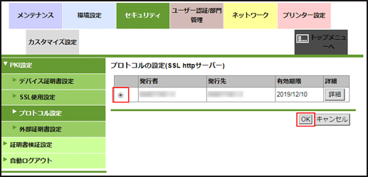 イメージコントローラーのSSL設定は、イメージコントローラーのWeb Connectionに管理者としてログインして、本機と同じ手順で設定します。
