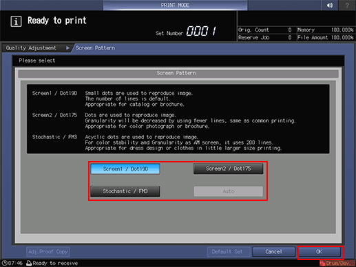 supplementary explanationAlso, you can select any desired screen after pressing Screen Pattern to display the Screen Pattern screen. Select a screen, and press OK.
