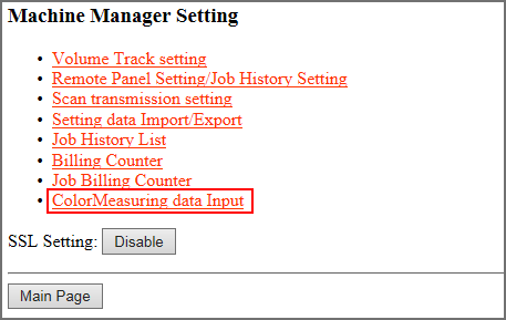To register colorimetric data in the machine via Web, configure a setting to access to Web Utilities from the computer connected to the machine via the network.