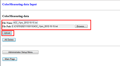 supplementary explanationMultiple sets of colorimetric data registered via Web is displayed on the Colored Data File Select screen.
