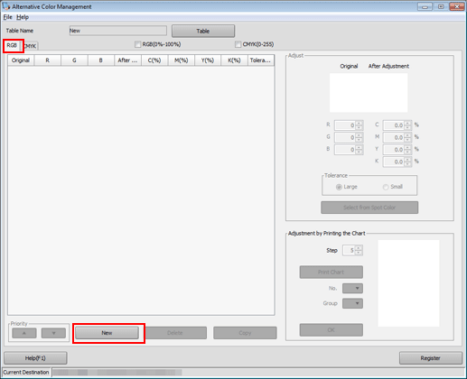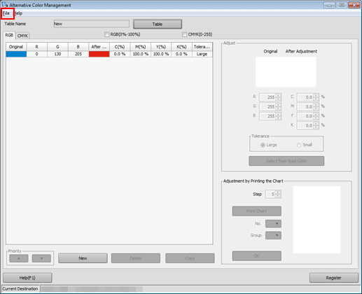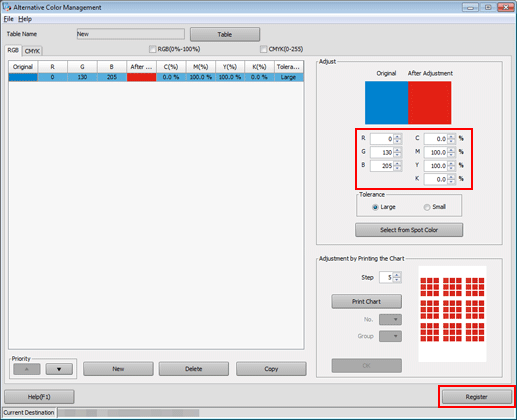 Set the color values for Original and After Adjustment under Adjust, and click Register.