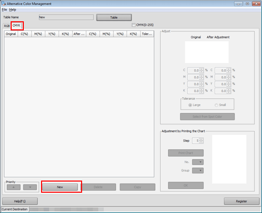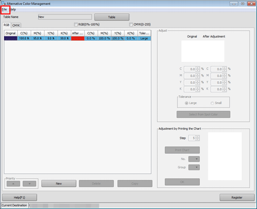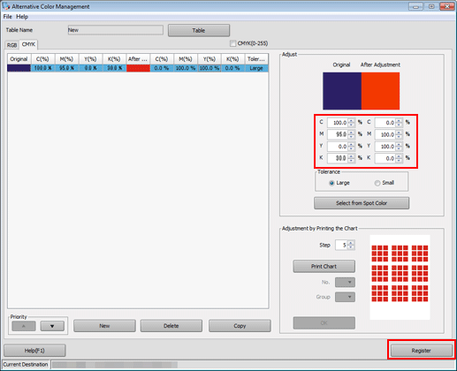 6. Set the color values for Original and After Adjustment under Adjust, and click Register.
