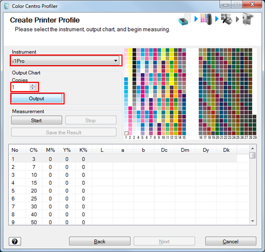 Print the color chart that is to be measured using the instrument.