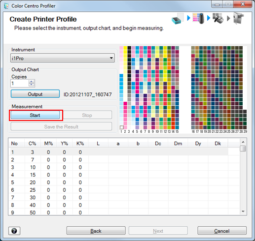 Color Centro Profiler starts.