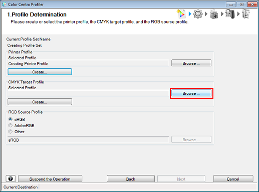 Example: Click Browse to select an existing CMYK target profile.