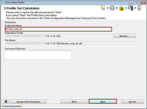 Example: "Sample_coat_GL" is entered in Profile Set Name.