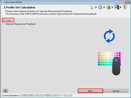 Selecting Execute Measurement Feedback enhances the accuracy of CMYK-CMYK conversion. For details, refer to Feeding Back the Measured Value.