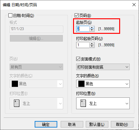 单击[编辑...]设置要打印页眉/页脚的起始页面和其他设置。