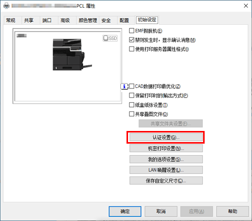 在[初始设定]选项中,单击[认证设置...]。