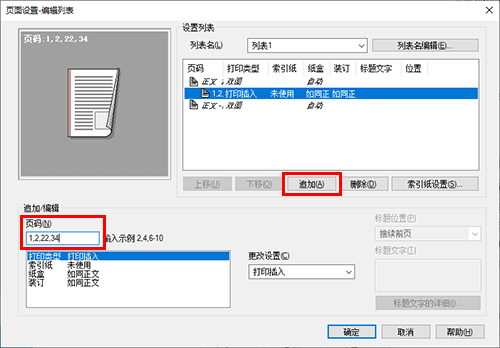 单击[编辑...]指定用于叠图打印的页面和位置。