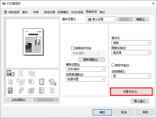 在[图像品质]选项中,单击[设置字体]。