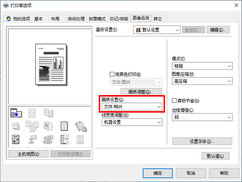 在[图像品质]选项的[颜色设置]中,选择要打印的文档类型。