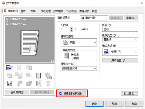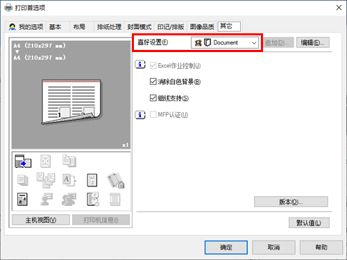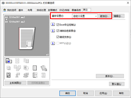 答案. 可以。您可以从打印机驱动程序的属性窗口轻松定制窗口,方法是在我的选项上批量注册常用功能,或者在相应选项卡上将设置注册为偏好以便快速激活。