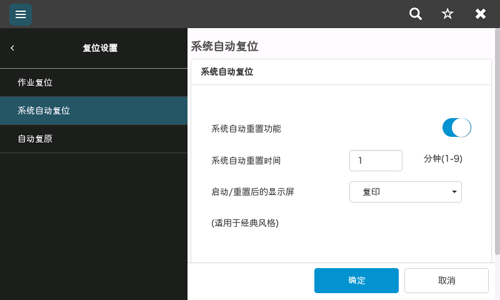选择[系统设置]-[复位设置]-[系统自动复位]。