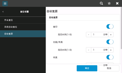 选择重置后显示的画面并输入返回至默认设置所需的时间。