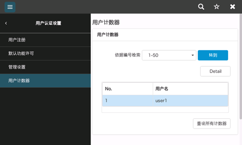 选择[用户认证/帐户监控]-[用户认证设置]-[用户计数器]。