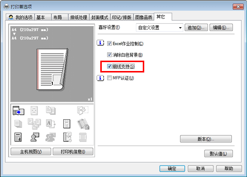 在[其它]选项上,选择[细线支持]复选框。