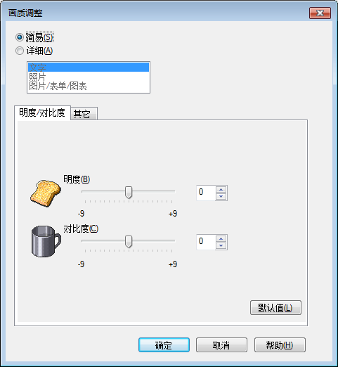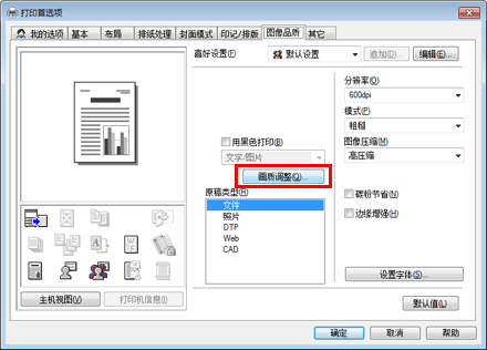 可以调整原稿的整体图像质量,也可以详细调整原稿每个元素(如文字和照片)的图像质量。当使用PCL驱动程序时,可以调整亮度和对比度。
