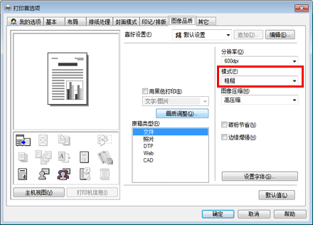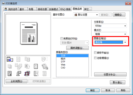 在[图像品质]选项的[图像压缩]中,选择压缩原稿中的图像数据时优先质量还是优先打印速度。