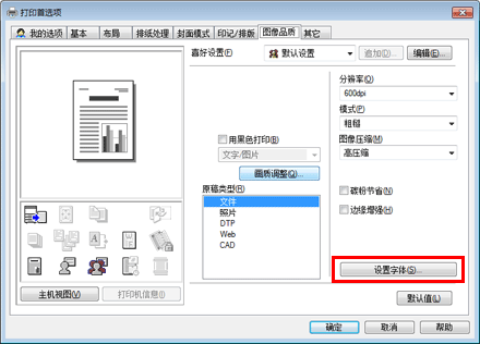 在[图像品质]选项中,单击[设置字体]。