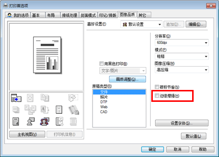 在[图像品质]选项中,选择[边缘增强]复选框。
