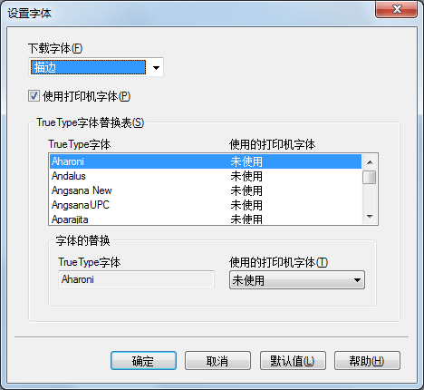 指定如何处理打印字体。