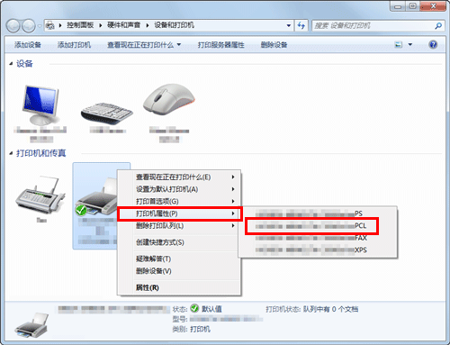 在Windows Vista/Server 2008中,右键单击所安装打印机的图标,然后单击[属性]。