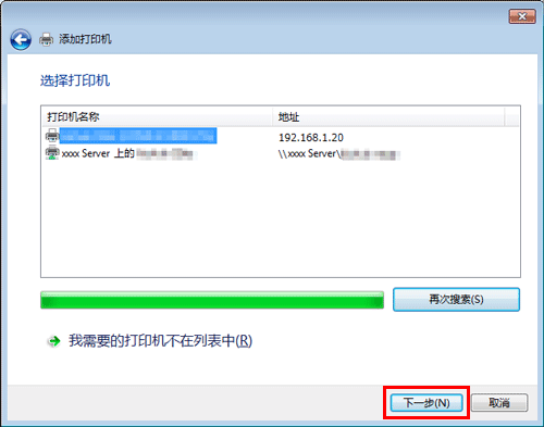在显示检测到的打印机的窗口中,单击[我需要的打印机不在列表中]。