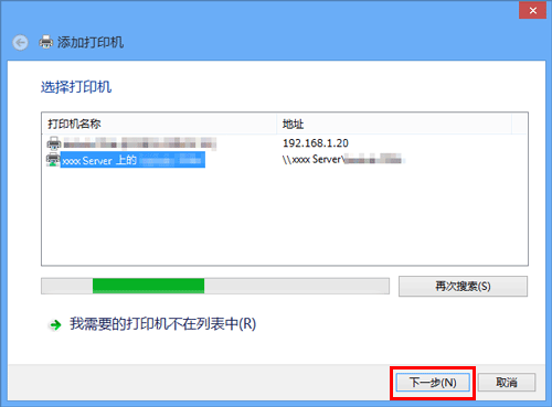在显示检测到的打印机的窗口中,单击[我需要的打印机不在列表中]。
