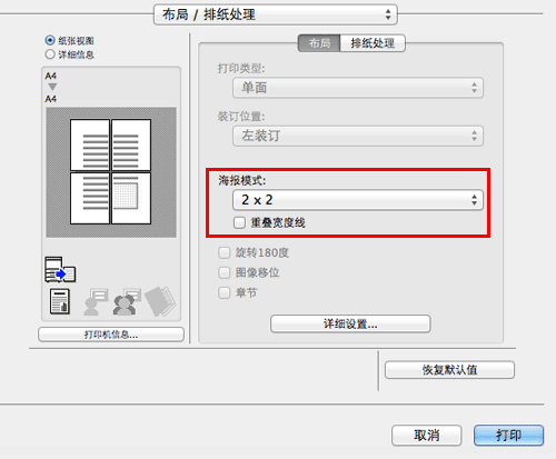 在[布局/排纸处理]的[海报模式:]中,选择"N