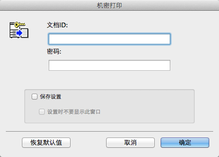 当选择了[保存设置]复选框时,设置将被保存。当选择了[设置时不要显示此窗口]复选框时,下一次将不显示此对话框。如果始终使用相同的文档ID和密码,选择此复选框可消除每次输入的必要。