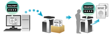 使用机密打印功能可以为打印数据设置文档ID和密码,并将数据保存在本机的Box (机密打印用户Box)中。由于不会立即打印数据,此功能可以防止已打印的材料丢失或无人看管。