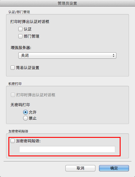若要更改加密密码,需要在本机和打印机驱动程序中设置相同的加密密码。