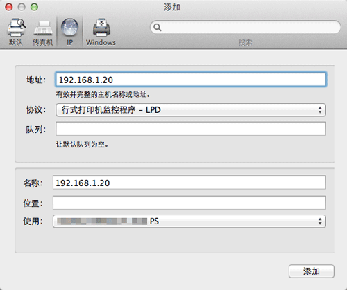 指定该IP地址的机器的打印机驱动程序显示在[打印使用:]中。