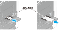 将明信片或信封装入手送托盘,并将进行打印的一面朝下放置。