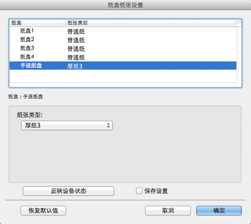选择[手送纸盒],在[纸张类型:]中指定相关纸张类型,然后单击[确定]。