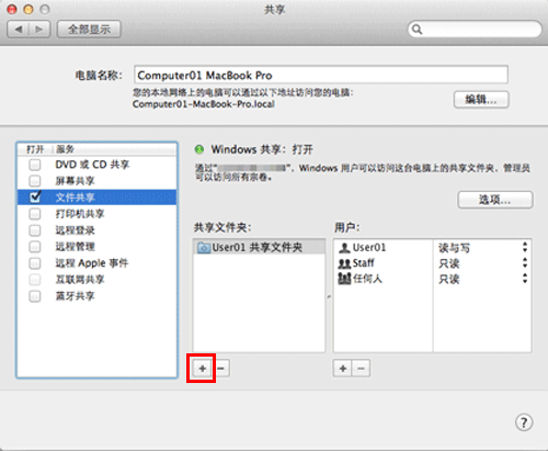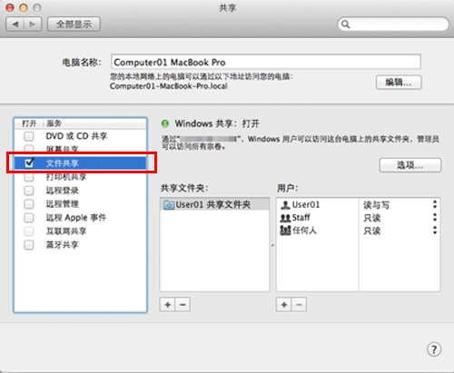 在[共享和发现]的[文件共享]中,单击[启用文件共享]。