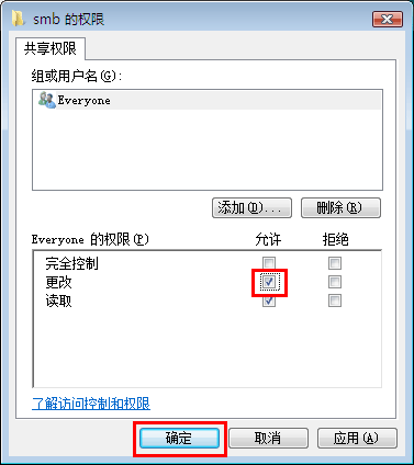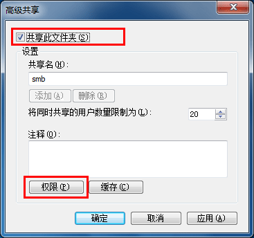 选择[共享此文件夹]复选框,然后单击[权限]。