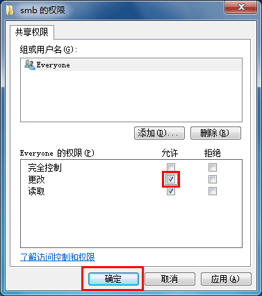 确认在步骤4中写下的用户名已显示并且访问权限设置为[读与写]。