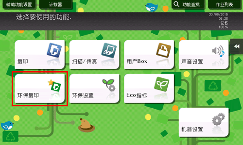 在主菜单上放置[环保复印]后,主菜单的背景会变为环保功能的背景。