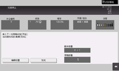 装入下一个原稿,然后触摸[编辑设置]。