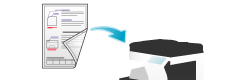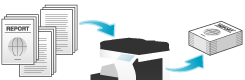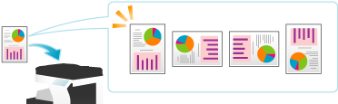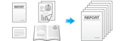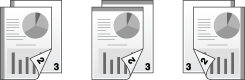 将每套设置不同的原稿进行扫描,然后一起复印。当混合有不同类型的原稿(如要在纸张一面打印的单面原稿和要放大复印的双面原稿)时,使用此功能。所有原稿都扫描后,可以添加页码或排纸处理功能(如分页)进行复印。