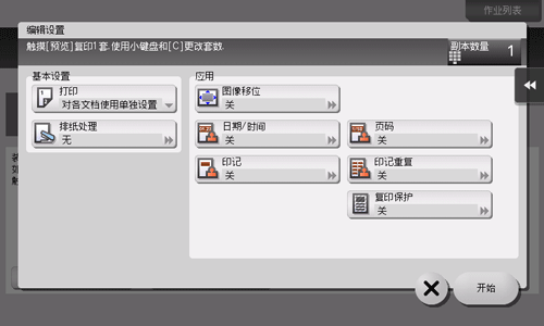 ]。触摸[编辑设置]更改复印设置。