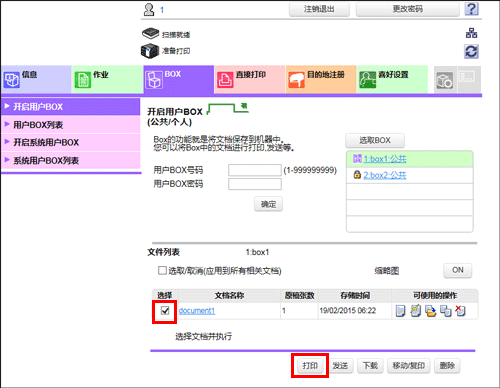 如果文件可以被打印,在[选择]列中将显示一个复选框。另外,在[可使用的操作]列中还会显示