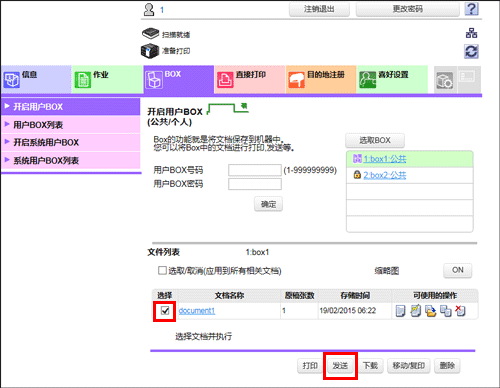 [用户BOX号码] | 从Box列表中选择目的地用户Box。 |