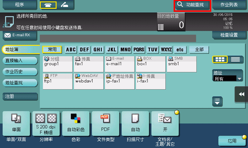 搜索的目标范围为复印功能或传真/扫描功能的设置。