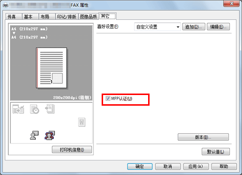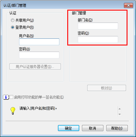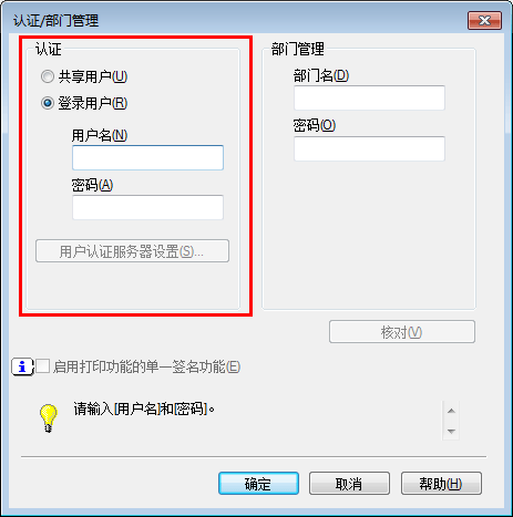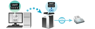 如果采用了用户认证和账户跟踪,则每个用户在发送PC-传真时都需要向本机发送他/她的认证信息(用户名和密码)。这将限制可通过本机发送PC-传真的用户,以及防止第三方未授权使用本机。
